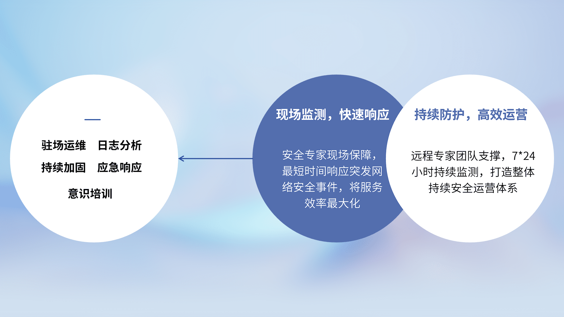 针对客户行业特性,,,提供专属的一站式安全管理服务,,,,帮助客户全面感知网络空间威胁,,,通过安全专家的线上、、、线下防护支持,,,,实现风险闭环,,,,将安全保障常态化,,,,为客户打造常态化安全运维运营服务。。